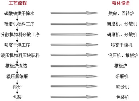 三、磷酸鐵鋰正極材料的工藝過程及其與粉體設備的關系