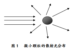 顆粒越細,散射光的角度越小。當顆粒幾何尺寸達到亞微米級別時,大于90度散射角散射光將明顯增強。微小顆粒的散射光甚至在360度范圍內都有分布,如圖1所示。
