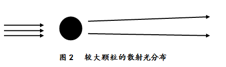大顆粒的散射角度很小,不容易分辨和測量,如圖2所示。當顆粒幾何尺寸大于500微米以上時,散射光散射角度極小,粒徑及時微米的差別產生的散射光散射角度差很小,現有技術不容易準確測量。