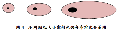 顆粒越小,分布在360度空間范圍的散射光光強差越小,當顆粒小到一定極限,光強差將小得幾乎難以被分辨出來。這時就到了激光粒度儀的測量下限了。從圖4可以看出,當顆粒小到一定程度,光強矢量圖無限接近圓形(顆粒無限接近圓心),這時的光強差是難以分辨的。光學設計上的障礙和散射光本身的特性決定了常規激光粒度儀的測量下限一般在0.2微米左右。