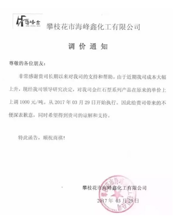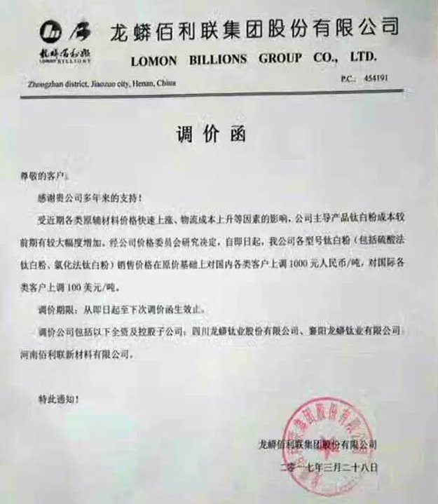 龍蟒佰利聯國內上調1000元/噸,外貿上調100美元/噸