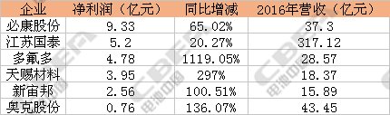 3月25日,國內六氟磷酸鋰龍頭多氟多發布2016年年度報告(更新后)稱,公司2016年營業收入達28.57億元,同比增長30.93%;歸屬上市公司凈利潤4.78億元,同比增長1119.05%。