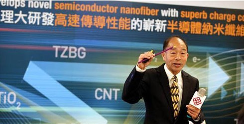 中國粉體網訊 4月13日,香港理工大學講座教授梁煥方在記者會上介紹研發成果。當日,香港理工大學召開新聞發布會,宣布該校機械工程學系研發團隊采用新科技,將傳導性能高的納米材料植入半導體納米纖維,研發出嶄新的半導體納米纖維。據介紹,這種新材料應用范圍廣泛,尤其可大幅提升太陽能電池效率以及光觸媒清潔空氣的效能。