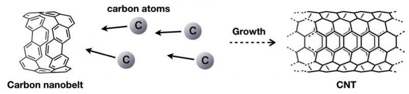 圖2.是使用碳納米帶作為模板的碳納米管生長(zhǎng)的常用方法。榮譽(yù):名古屋大學(xué)