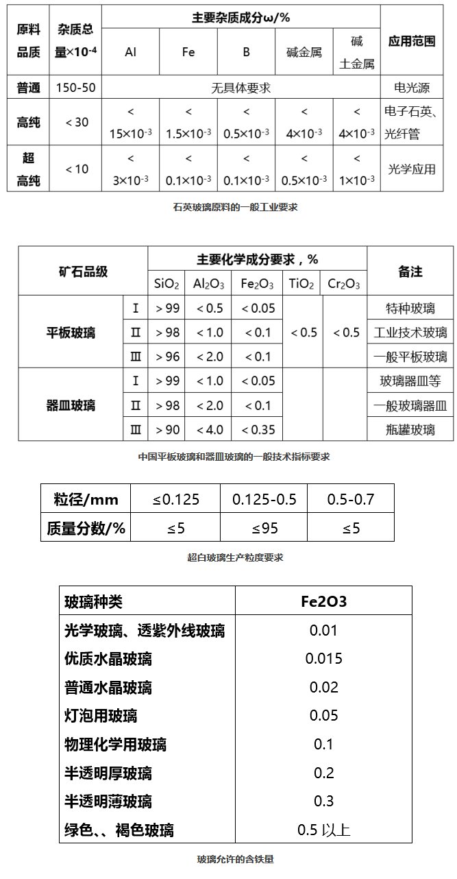 一般陶瓷釉料用石英砂要求:SiO2>98.5%,Al2O3<0.05%,粒度-200目占98%。