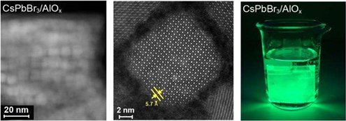 在拉法利亞•布桑蒂在洛桑聯邦理工學院的瓦萊•沃利斯的實驗室開發了穩定鈣鈦礦型量子點的新方法。由Anna Loiudice和博士生Seryio Saris聯手開發的這項研究,其創新在于使用了一種稱為“原子層沉積”(ALD)的技術,通常用于制造結構高度均勻的超薄膜。這個新方法是使用ALD將鈣鈦礦量子點封裝在無定形氧化鋁基質中,該基質充當氣體和離子擴散阻擋層,從而使量子點對空氣,光,熱和水分不再很敏感。