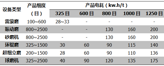 (1)從超細產品的單機生產規模看,沖擊磨、干式砂磨機和環輥磨的單機生產能力都偏小,相比較而言,球磨機和立式磨在同等情況下可以獲得更高的產量,易于實現重鈣規;庸。