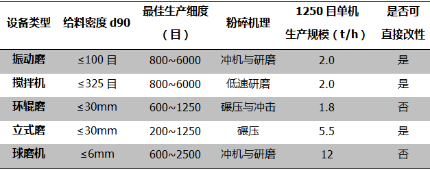 表2 常用重鈣生產設備產能比較