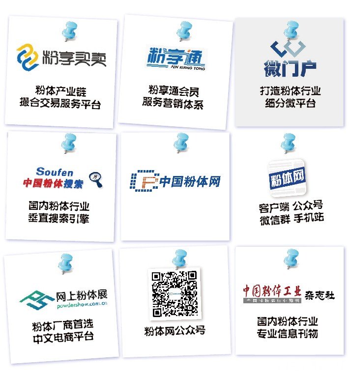 中國粉體網(www.sxoffice.com.cn)創建于2002年,是粉體行業成立最早的網站之一,是全球最大的中文粉體行業門戶網站。服務體系如下: