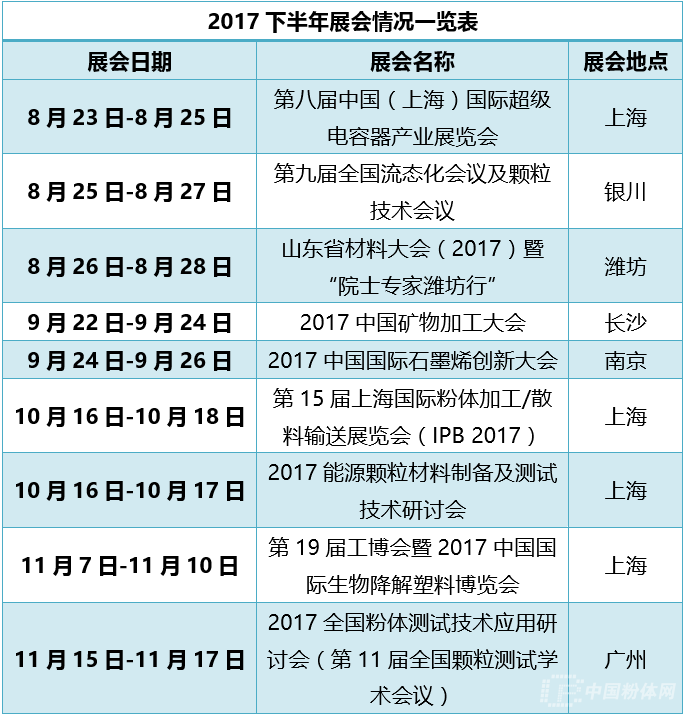 參加展會是粉體企業推廣和學習最好的機會。上半年已過,下半年豈容錯過。