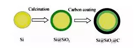 包覆結構是在活性物質硅表面包覆碳層,緩解硅的體積效應,增強其導電性,根據包覆結構和硅顆粒形貌,包覆結構可分為核殼型、蛋黃-殼型以及多孔型。
