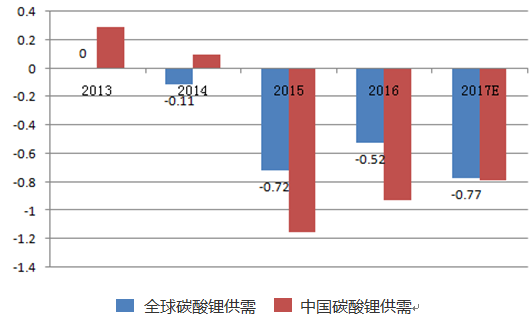 2015年碳酸鋰價格大漲主要在于國家頒布了新能源汽車補貼政策,對市場刺激很強,而當時的產能供應無法及時跟上,出現碳酸鋰價格直線上升的狀態;而2016年,碳酸鋰價格逐步回歸平穩甚至略有下降的主要原因是出現了車企騙補事件,國家嚴厲打擊,弱化了部分碳酸鋰的需求,價格有所回落;2017年初,碳酸鋰價格再次上漲的原因除了國家出臺新的更加完善和嚴密的新能源汽車補貼政策,再次被看好的動力電池使碳酸鋰價格恢復上漲之外,還有因氣候因素,鹽湖提鋰受到限制, 碳酸鋰產量受限,供應減縮,致碳酸鋰價格進一步上漲。