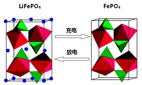 磷酸鐵鋰是一種橄欖石結(jié)構(gòu)的聚陰離子磷酸鹽,其充放電反應(yīng)是在磷酸鐵鋰和磷酸鐵兩相間進(jìn)行的。充電時,Li+ 從LiFePO4中脫離出來,F(xiàn)e2+ 失去一個電子變成 Fe3+;放電時,Li+ 嵌入磷酸鐵中變成 LiFePO4 。