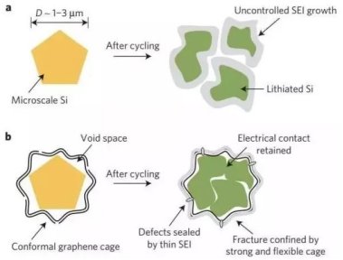 文獻鏈接:Yuzhang Li, Yi Cui et al. Growth of conformal graphene cages on micrometre-sized silicon particles as stable battery anodes. Nature Energy 2016, 1.