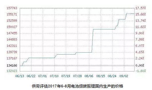 供需評估2017年6-8月電池級碳酸鋰國內生產的價格