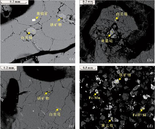 (a)—(c)為石英巖樣品;(d)為從濕法石英砂中磁選出的鐵雜質(zhì)顆粒