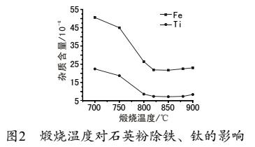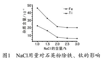 利用無機鹽高溫熔化或高溫加熱時強的反應活性與石英中雜質反應生成易溶于水或酸的物質。如NaCl高溫下與Fe2O3反應生成FeCl3,與TiO2反應生成TiCl4。常用的無機鹽有硫酸氫鉀熔鹽,氯化鈉、氯化鈣、氯化鎂、硝酸鈉、氯化銨等。