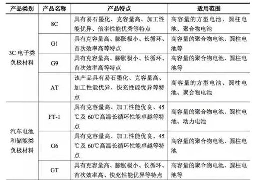 據券商調研顯示,江西紫宸擁有獨特的原材料甄選技術、粉體材料各向同性化處理、表面改性及高溫熱處理等核心技術,產品差異化明顯。主流產品的首次放電容量達360mAh/g以上,配向性(I004/I110)小于10,壓實密度達1.7g/cm3以上,循環壽命1,000次容量保持在80%以上,廣泛運用于國內外主流消費類和動力類電池中。產品類別如下圖: