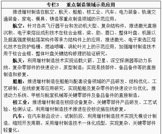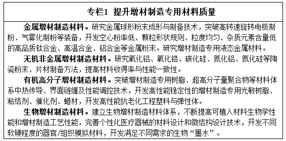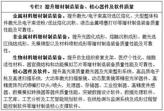 《行動計劃》不僅提出提升增材制造專用材料質量,同時要求提升增材制造裝備、核心器件及軟件質量以及增材制造服務質量。