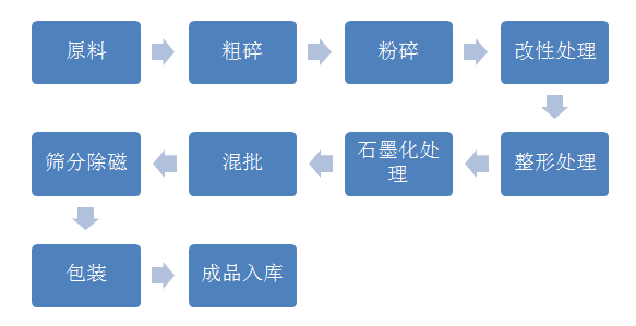 人造石墨是將骨料和粘結劑進行破碎、造粒、石墨化、篩分而制成;镜墓ば蛄鞒淌且恢碌。