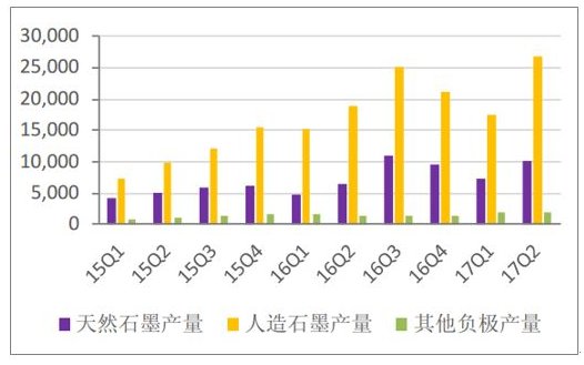 目前市場上負極材料主要以人造石墨與天然石墨為主,受益于動力電池的強勁需求,人造石墨以其可靠性和安全性成為了負極材料的市場主流。