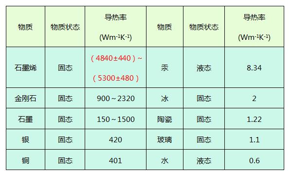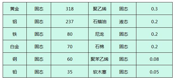 表:導(dǎo)熱材料的導(dǎo)熱率