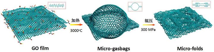 對宏觀材料來說,高導(dǎo)熱和高柔性正如蹺蹺板的兩極,不可兼得。研究者們致力于制備出一種兼具高導(dǎo)熱性和高柔性的材料,未來可用于折疊手機(jī)和電腦,甚至是航天領(lǐng)域。浙江大學(xué)高分子系高超教授團(tuán)隊(duì)研發(fā)的新型石墨烯膜非常柔韌,能夠承受反復(fù)折疊和彎曲。在呈現(xiàn)超柔性的同時(shí),這種石墨烯膜還具有高導(dǎo)熱性,刷新了宏觀材料導(dǎo)熱率的紀(jì)錄。其制備過程是將石墨烯交疊起來后加溫,石墨烯膜內(nèi)部就產(chǎn)生一個(gè)個(gè)微小的氣囊,隨后再施加壓力把微氣囊中的氣體排出,豐富密集的微褶皺就形成了。在宏觀層面,石墨烯膜的表明仍很光滑。微小的褶皺為材料在拉伸彎折時(shí)提供足夠的應(yīng)變空間,使高柔性成為可能,同時(shí)又不在宏觀上損害材料的高導(dǎo)熱性。經(jīng)實(shí)驗(yàn)驗(yàn)證,其導(dǎo)熱性比商用石墨膜要好。