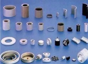 黏結釹鐵硼是將釹鐵硼粉末與樹脂、塑膠或低熔點金屬等黏結劑均勻混合,然后用壓縮、 擠壓或注射成型等方法制成的復合型釹鐵硼永磁體。產品一次成形,無需二次加工,可直接做成各種復雜的形狀(如上圖)。