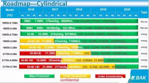 比克:在能量密度提升上,比克動力從2007年開始三元電池研發,正極材料體系經過NCM111、NCM532到目前NCM811、NCA的研發;負極材料方面,人造石墨已到達能量密度提升天花板,目前多集中在硅基材料的研發。