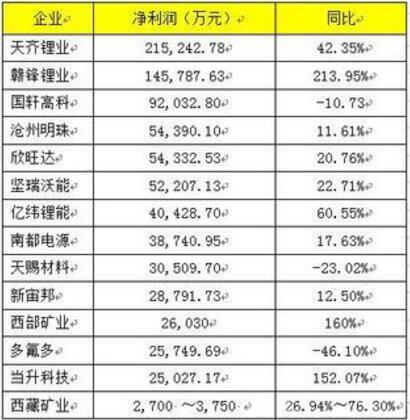 中國粉體網訊 截至到3月7日,共統計出14家上市鋰電池企業的2017年利潤情況,從現有情況來看,80%的鋰電池企業在2017年利潤都取得了不同程度的上漲,上漲最快的是贛鋒鋰業,利潤增長達到了213.95%,而賺錢最多的則是天齊鋰業,利潤額超過了20個億。