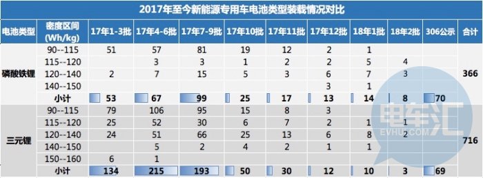 近日,電車匯檢索2018年第2批推薦目錄、第306《道路機動車輛產品公告》公示時發現,被業內廣泛看好的三元鋰電池,在新能源專用車應用方面一直處于“倒退”狀態,磷酸鐵鋰電池市場占比反而成功“反撲”。