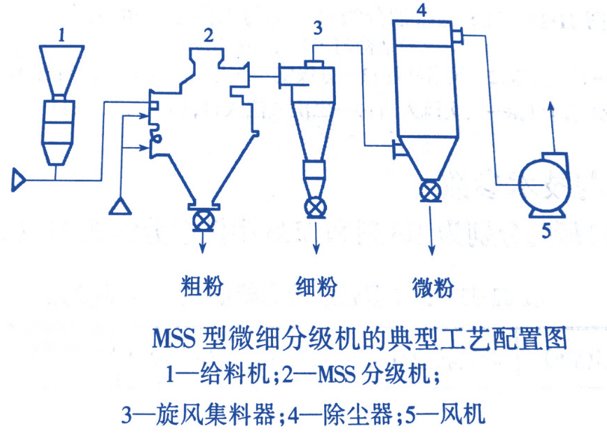 MS型和MSS型微細分級機常用于與高速機械沖擊式磨機、球磨機等配套使用構成內閉路超細粉碎作業,以提高粉碎作業效率、控制產品細度和粒度分布。這種分級機在非金屬礦物超細粉體材料的加工中得到了廣泛應用。
