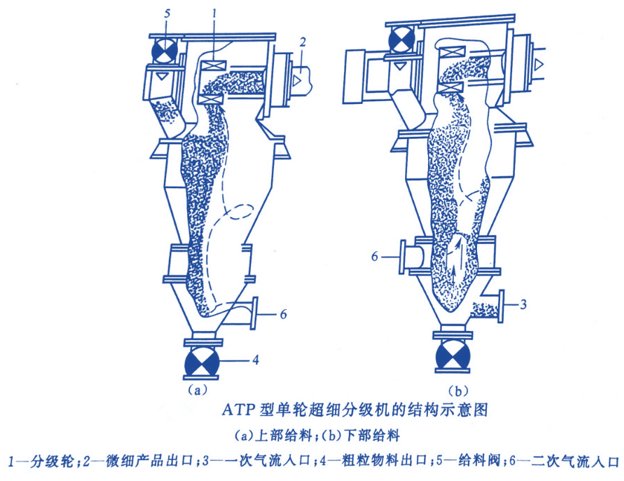 ATP型超微細分級機常用于與流態化床對噴式氣流粉碎機、高速機械沖擊式磨機、球磨機等配套使用或與流態化床對噴式氣流粉碎機及高速機械沖擊式磨機做成一體,構成內閉路超細粉碎作業,以提高粉碎效率、控制產品細度和粒度分布。