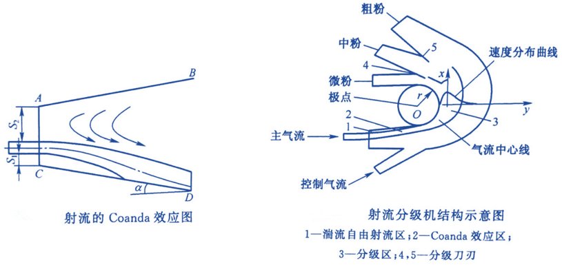 射流分級機是集慣性分級、迅速分級和微細顆粒的附壁效應(Coanda效應)等原理于一身而進行超細分級的分級設備。
