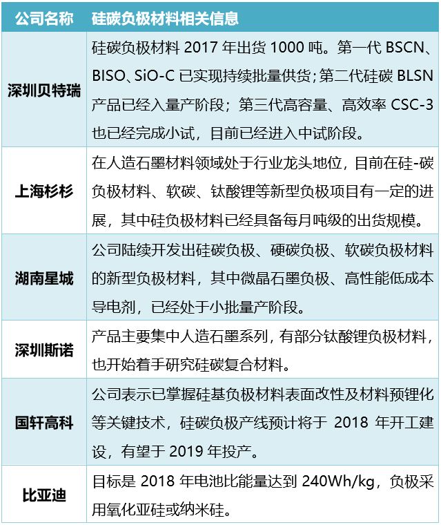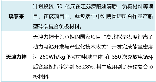 國(guó)內(nèi)涉及硅碳負(fù)極材料的公司