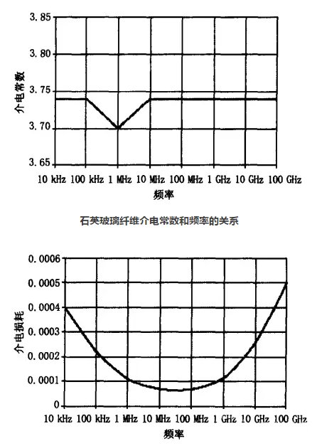 石英玻璃纖維有著優越的電絕緣性,它的介電常數和介質損耗系數是所有礦物纖維中最好的。石英玻璃纖維介電常數、介質損耗系數和頻率的關系。