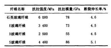 石英玻璃纖維的抗拉強度是普通玻璃纖維的3倍,它和玻璃纖維的抗拉強度、抗拉模量和斷裂伸長率比較見下表。