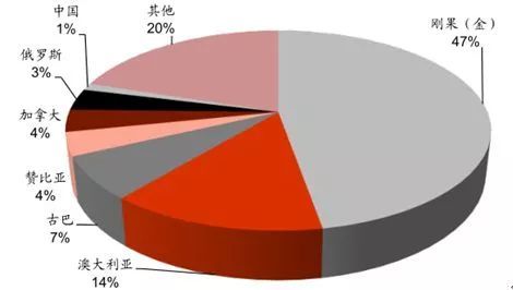 數據顯示,全球已探明鈷的資源量是2500萬噸,儲量720萬噸,儲量高度集中在剛果(金)、澳大利亞和古巴。這3國儲量就占到了全球總儲量的70%。而中國儲量僅為8萬噸,占全球儲量的1.1%。我國近90%鈷原料進口量來自剛果。