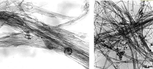 由圖可見,單根碳納米管為纖維狀一維納米材料,長徑比較大。因此碳納米管容易糾纏粘結在一起,形成很大的團聚體。
