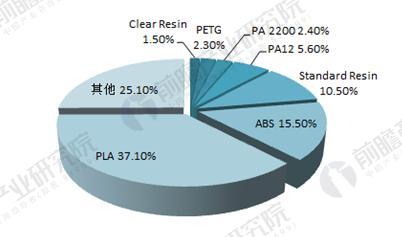 現階段隨著技術和研發的推進,目前有300多種材料可用于3D打印制造,由于現階段90%的3D打印機用戶都使用的是桌面級產品,因此像ABS、PLA這兩種塑料材質的耗材用量占比超過50%,目前高分子材料生產商也主要集中于ABS和PLA以及尼龍材料。