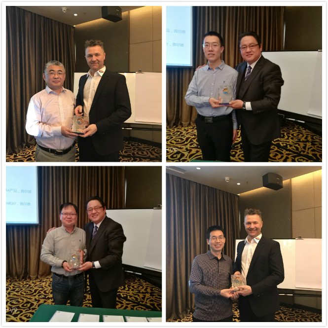 弗爾德儀器技術部經理張軍宇先生作為主持人,總結各授權代理商2017年的業績及市場情況。2017年弗爾德旗下品牌德國Retsch(萊馳),Carbolite Gero(卡博萊特蓋羅),Eltra(埃爾特),Retsch Technology(萊馳科技)銷售業績增長迅猛,總業績達到史上最高,這離不開授權代理商的大力支持與合作。會議現場為多個代理商頒發了優秀代理商獎及特別貢獻獎。