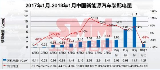 2017年我國新能源汽車生產約81.1萬輛,銷售77.7萬輛。動力電池裝機總電量約36.24GWh,同比增長29%。