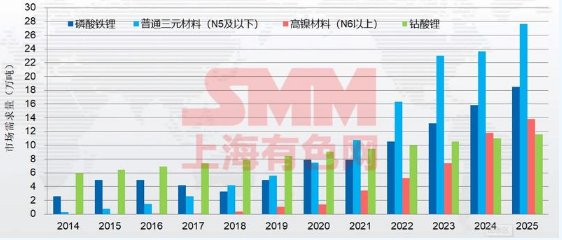 隨著鋰離子電池整體成本的快速降低,同時因為磷酸鐵鋰材料在循環和成本等多方面的優勢,最有可能率先用于鋰離子電池替代鉛酸電池,在儲能領域大規模應用。據預測,到2024年,全球儲能系統的安裝容量將達到45Gwh/81GWh。采用磷酸鐵鋰電池,將新增磷酸鐵鋰需求10-20萬噸。