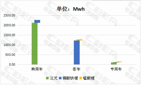 圖2:2018年4月不同電池類型在不同類車型的裝機(jī)量分布情況