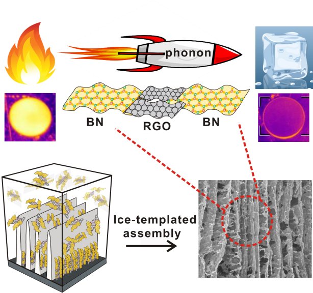 圖2.三維氮化硼-石墨烯網絡的導熱原理示意圖