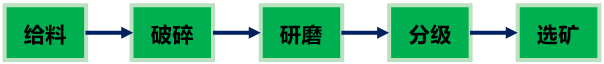 原礦石、廠家生產(chǎn)工藝的差別導致具體的生產(chǎn)步驟存在一些差異,我們綜合了一些選礦生產(chǎn)流程,大致分了以下幾個步驟: