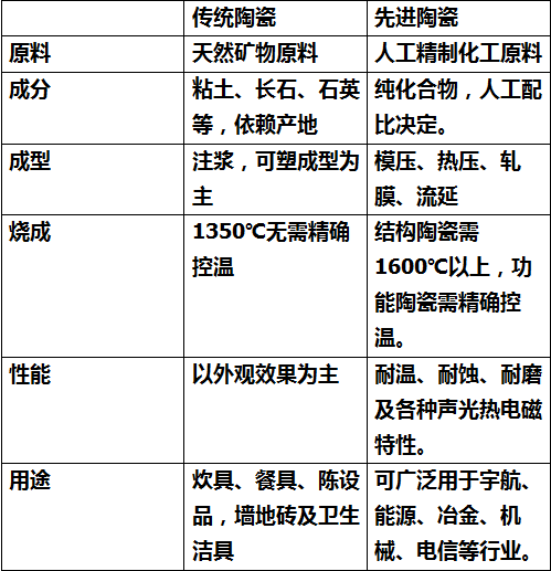 傳統(普通)陶瓷與先進(特種)陶瓷的對比