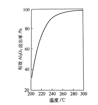 溫度在溶出天然的一水硬鋁石鋁土礦時所起的作用比溶出純一水硬鋁石時更加顯著。因為在溶出鋁土礦時會有鈦酸鹽和鋁硅酸鹽保護膜的生成,提高溫度使這些保護膜因再結晶而破裂,甚至不加石灰也有良好的溶出效果。
