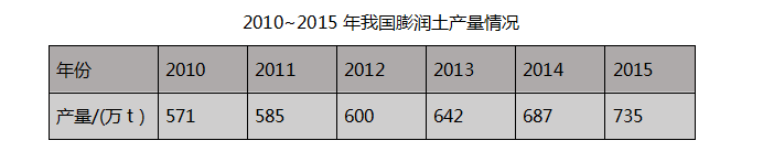 膨潤土在國民經濟中是個小商品、小行業,至今沒有列入國家正規信息與統計體系。因此,沒有一個機構與個人可以拿出準確的行業生產與市場信息數據。