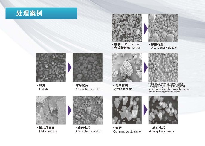 球形化,表面處理等粒子形狀設計的機器,可連續生產;